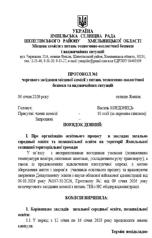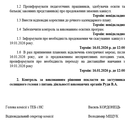 З 12 січня по 16 січня 2026 року продовжити зимові канікули.